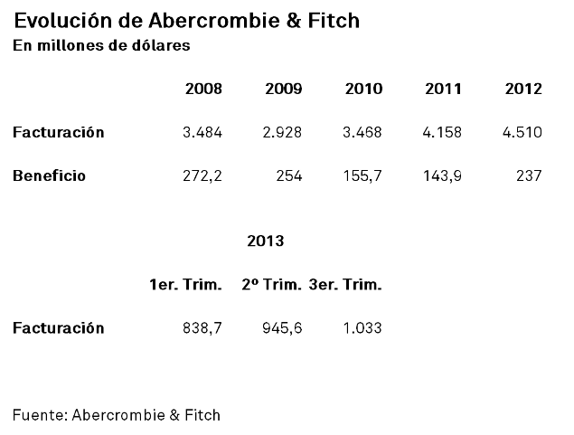 Si bien es cierto que Abercrombie & Fitch ha sido una de la pocas marcas de Estados Unidos que ha visto crecer sus resultados en la situación económica actual, en 2009, segundo año tras el estallido de la crisis, el grupo estadounidense vio cómo sus ventas y su beneficio caían más de lo esperado: pasó de facturar 3.484 millones de dólares en 2008 a 2.928 millones de dólares. El beneficio también se resintió: de 272,2 millones de dólares en 2008 pasó a 254 millones de dólares en 2009.