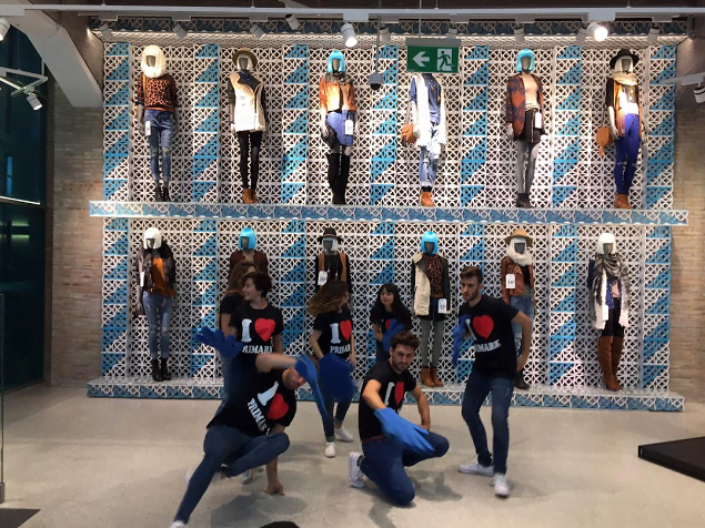 Ahora, todo lo que hace tres años eran oficinas hoy es espacio comercial. Una gran escalinata invita al cliente a subir cuatro plantas para encontrarse con la oferta de moda femenina, masculina, infantil y moda de hogar de Primark; no sin antes deleitarse con todos los balcones que se aprecian desde la planta baja de la tienda, cubiertos por pantallas que invitan a los fans de la marca a postear en redes sociales todo lo que ven dentro del establecimiento.