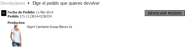 Una vez abierto el paquete y después de probarse su camiseta blanca, el comprador decide que prefiere devolver la prenda, recuperar su dinero y continuar con su búsqueda en otros operadores online.