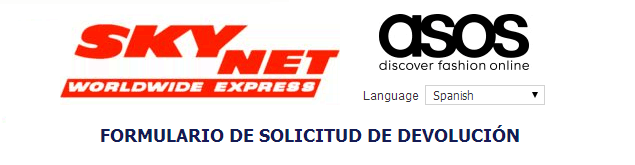 El cliente vuelve a entrar en asos.com y se identifica. Al buscar la pestaña de devolución, Asos ofrece al cliente tres opciones: por un lado, la recogida en el domicilio a través de la empresa SkyNet, por un costo de 7,95 euros (el operador redirige directamente a la web de la empresa de mensajería, donde hay que rellenar un formulario con opciones de idiomas). Por otro lado, ofrece la posibilidad de dejar el paquete en sitios Punto Pack de los alrededores de su domicilio, por un total de 4,80 euros. La última opción consiste en el envío postal (por cuenta del cliente, a través del servicio postal que prefiera – deberá asumir el coste) de la devolución a la central del socio logístico de Asos, la empresa SkyNet, para que luego la compañía se encargue de devolver el paquete a los almacenes de Asos en Reino Unido.