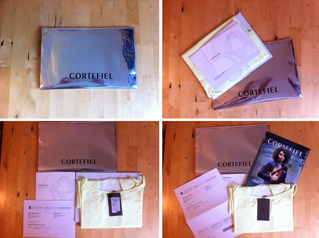 El packaging de la prenda es sencillo, sin ninguna protección de cartón. Se trata de una bolsa de Cortefiel precintada que incluye la camiseta. Aun así, el envoltorio ha cumplido su función ya que la prenda se encuentra en perfecto estado. Dentro de la bolsa se incluye el albarán de entrega y un catálogo. El mismo día, Cortefiel realiza el cobro del pedido.