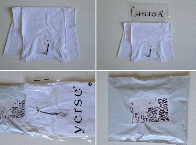 El packaging consta de una bolsa blanca de plástico, únicamente identificable por la etiqueta de Correos que detalla que el remitente es Vente Privee. Dentro está la camiseta, doblada y envuelta por un plástico protector. Resulta llamativa la ausencia de la factura de la compra y de un folleto que informe sobre el proceso de devolución.