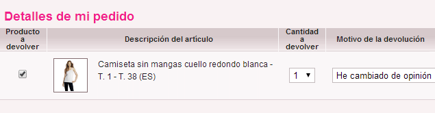 Una vez abierto el paquete y después de probarse su camiseta blanca, el comprador decide que prefiere devolver la prenda, recuperar su dinero y continuar con su búsqueda en otros operadores online.