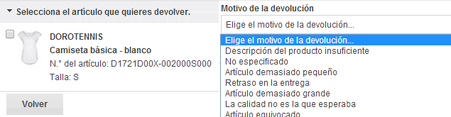 Una vez abierto el paquete y después de probarse su camiseta blanca, el comprador decide que prefiere devolver la prenda, recuperar su dinero y continuar con su búsqueda en otros operadores online.