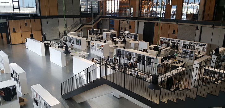 En madera, hormigón y metacrilato, el epicentro del edificio es el espacio abierto para los equipos de diseño, grafismo, operaciones, comercial y compras. En las salas adyacentes se encuentran los equipos de patronaje, corte y confección de muestras. La empresa mantiene en plantilla a nueve patronistas, doce cosedoras y cuatro cortadoras sólo para la confección de muestras.
